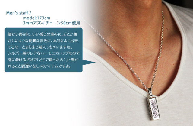 ハーモニカペンダント シルバーアクセサリー 3mmアズキチェーン割引セット 送料無料 ラッピング無料